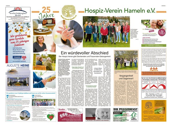 "Würdevoll leben, geborgen sterben, begleitet trauern" - viel Gehalt stecht in diesen wenigen Worten. Für den Hospiz-Verein Hameln in der Domeierstr. 43 ist dieser Satz zum Leitbild seiner wichtigen Arbeit der Sterbe- und Trauerbegleitung geworden. Seit mittlerweile 25 Jahren schenkt der Verein sterbenden Menschen in ihren letzten Lebenstagen wertvolle Zeit, ein offenes Ohr und ganz viel Herz.